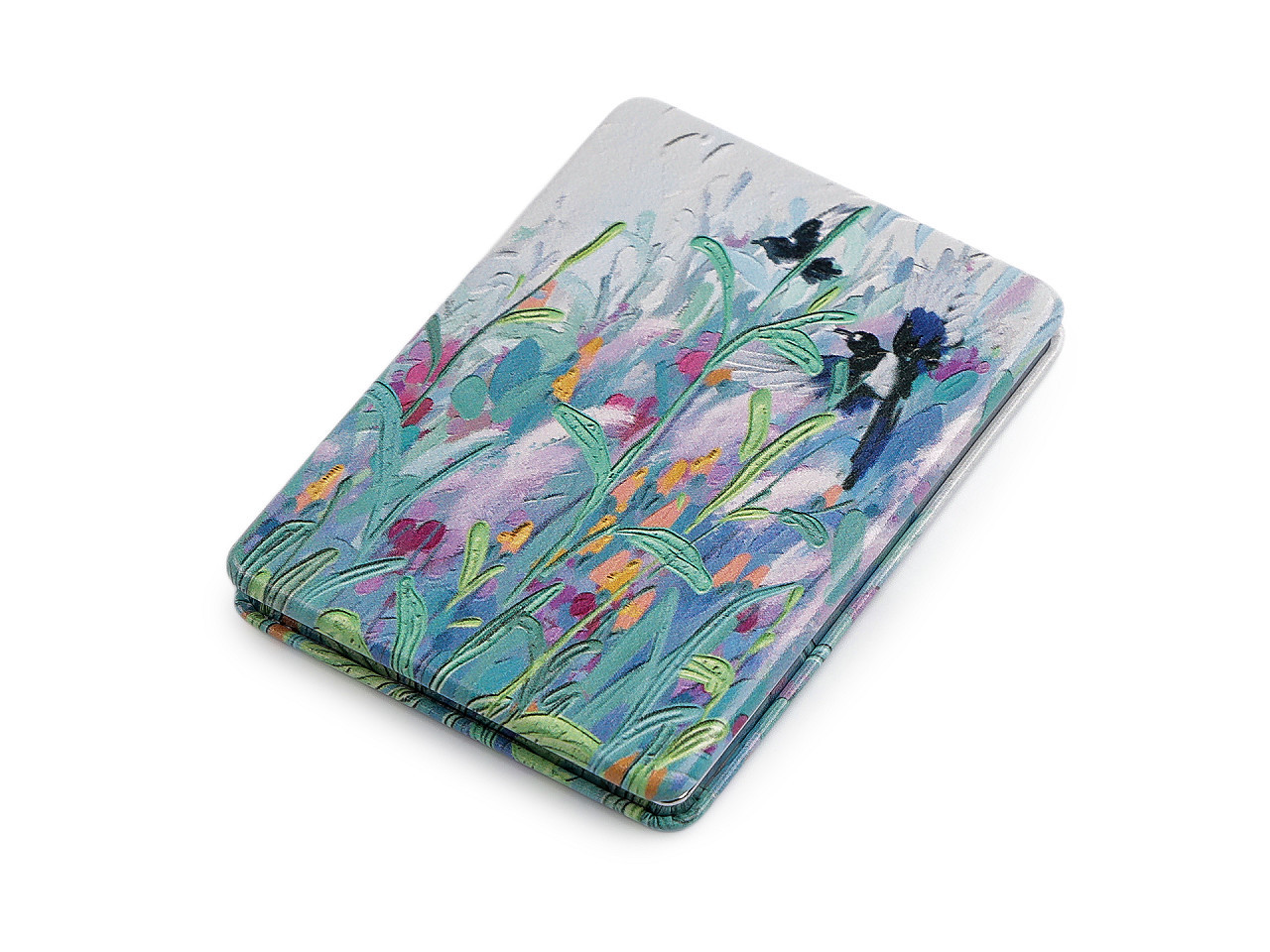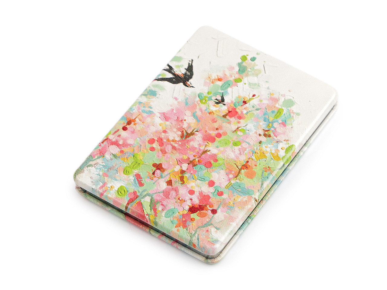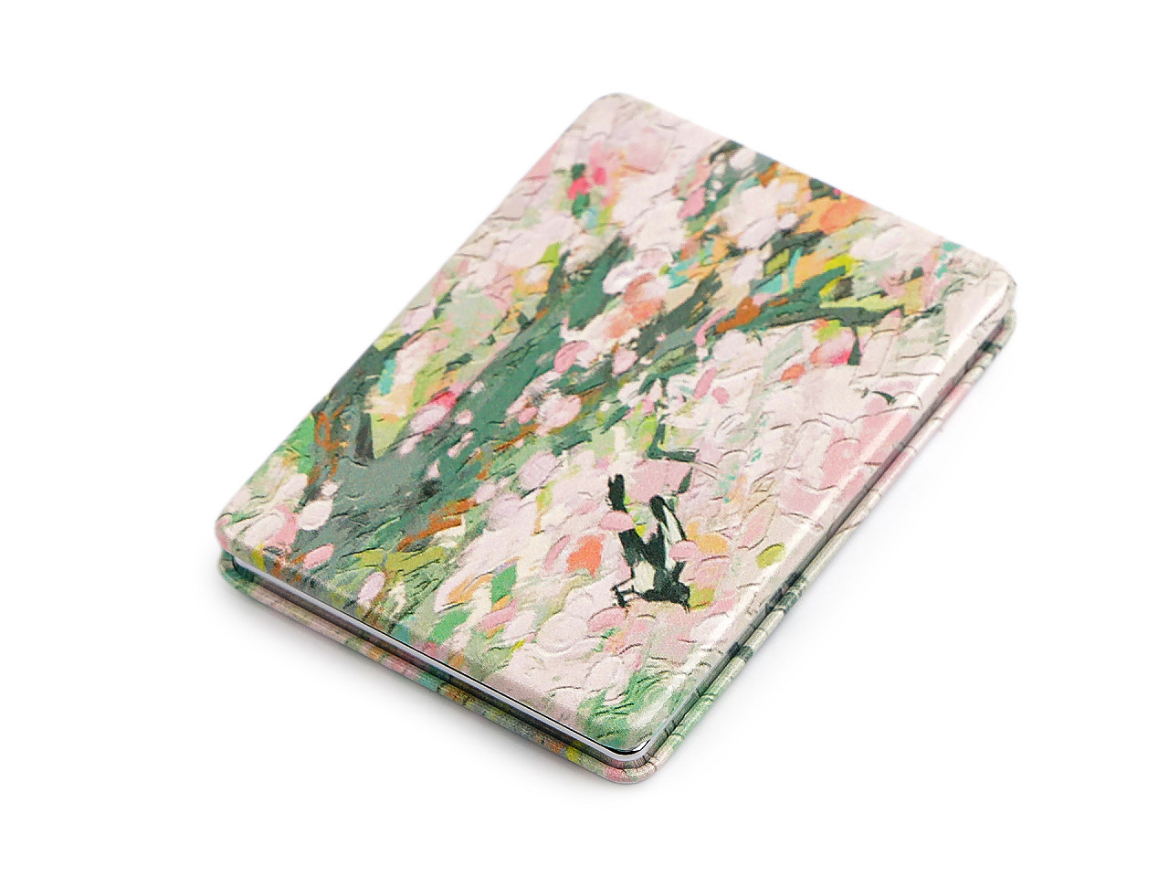Elegantní kosmetické zrcátko s motivem přírody je stylovým doplňkem, který ocení každá žena. Otevírací design zdobí jemný potisk kvetoucí přírody inspirovaný malbami starých mistrů, což mu dodává romantický a nadčasový vzhled. Vyrobeno z kvalitních materiálů a potažené ekologickou kůží, zrcátko zaručuje dlouhou životnost a komfortní použití. Uvnitř se nachází dvě praktická zrcátka – jedno klasické a jedno zvětšovací pro dokonalé úpravy make‑upu během dne.