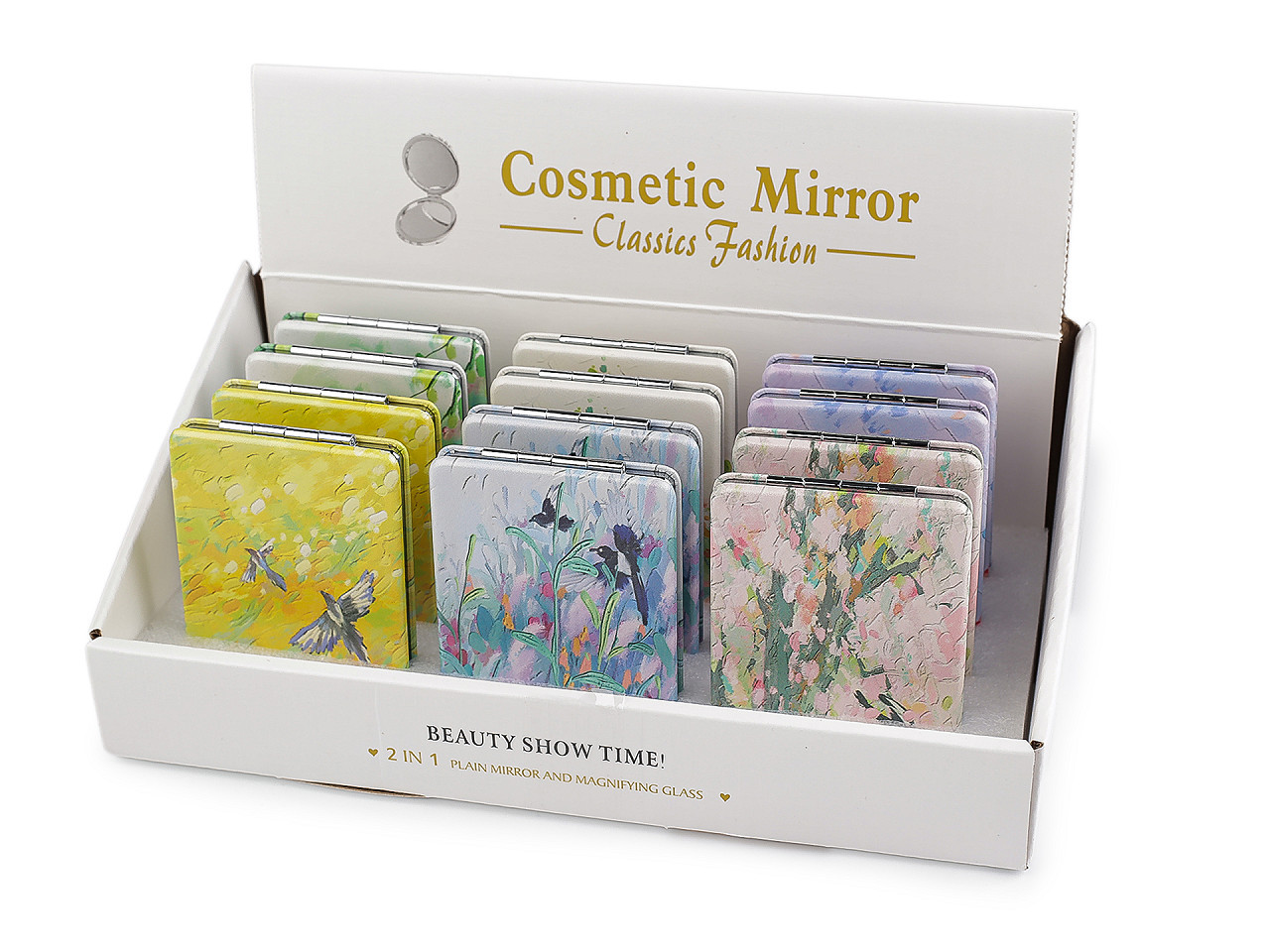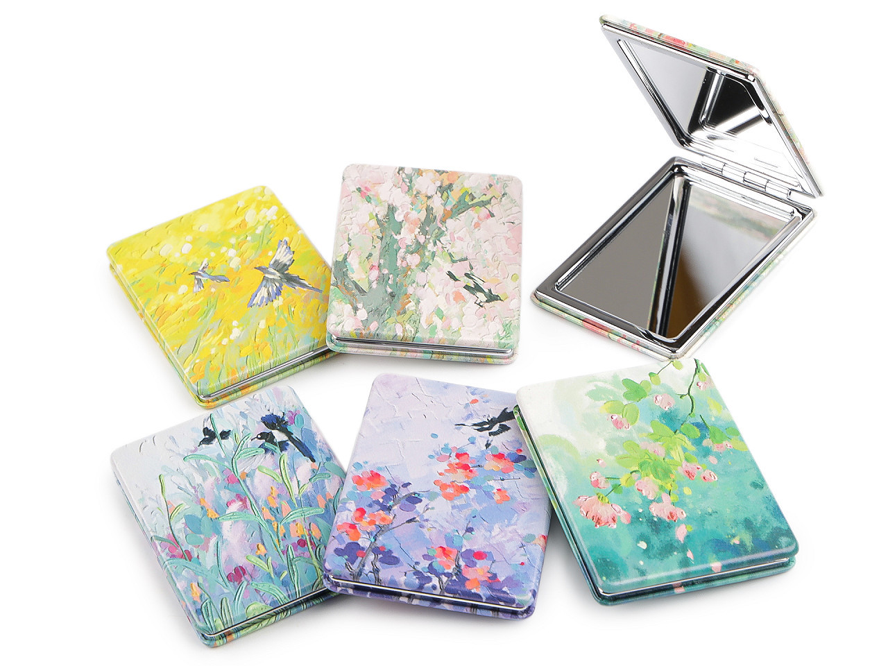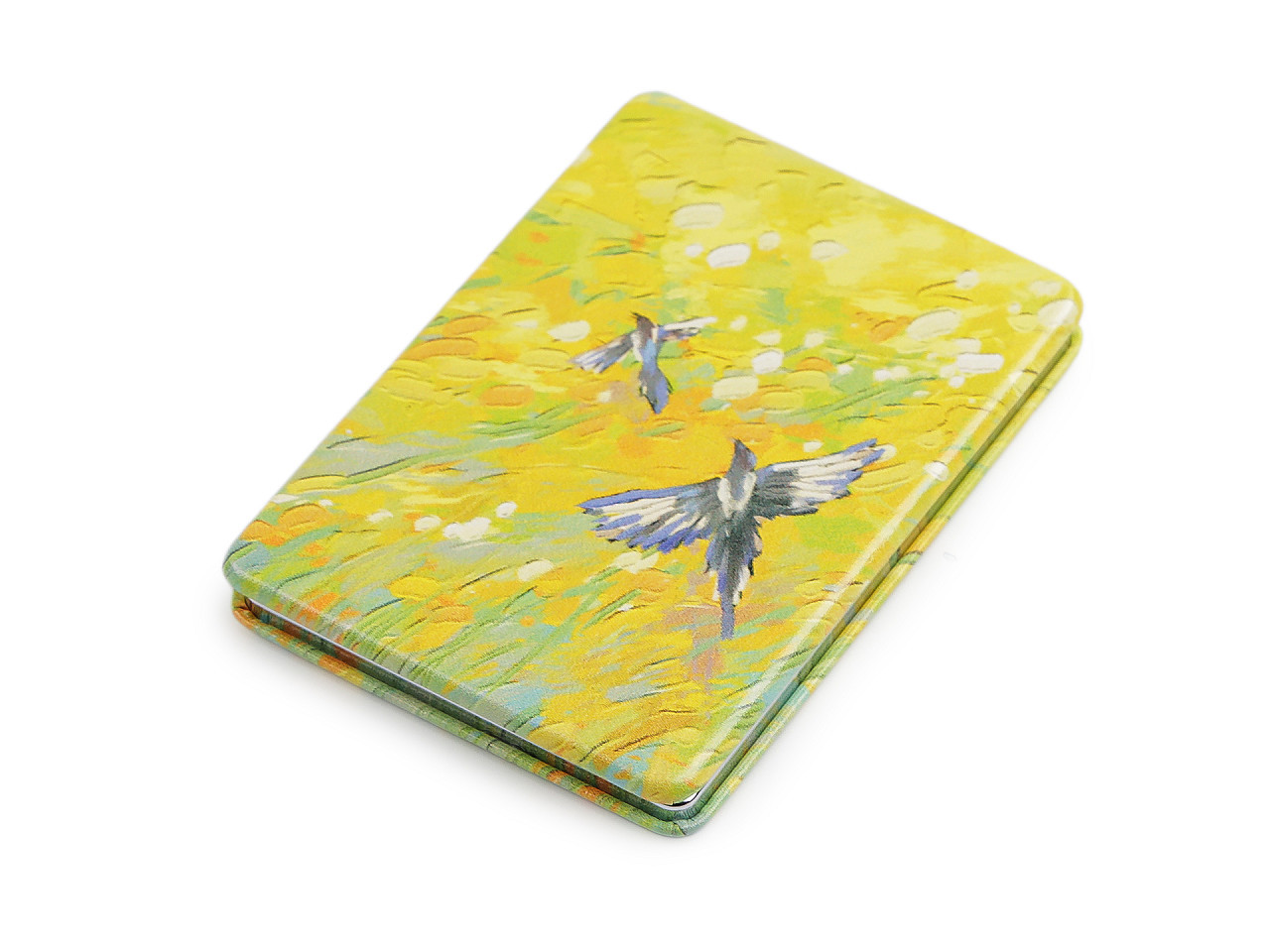 Elegantní kosmetické zrcátko s motivem přírody je stylovým doplňkem, který ocení každá žena. Otevírací design zdobí jemný potisk kvetoucí přírody inspirovaný malbami starých mistrů, což mu dodává romantický a nadčasový vzhled. Vyrobeno z kvalitních materiálů a potažené ekologickou kůží, zrcátko zaručuje dlouhou životnost a komfortní použití. Uvnitř se nachází dvě praktická zrcátka – jedno klasické a jedno zvětšovací pro dokonalé úpravy make‑upu během dne.