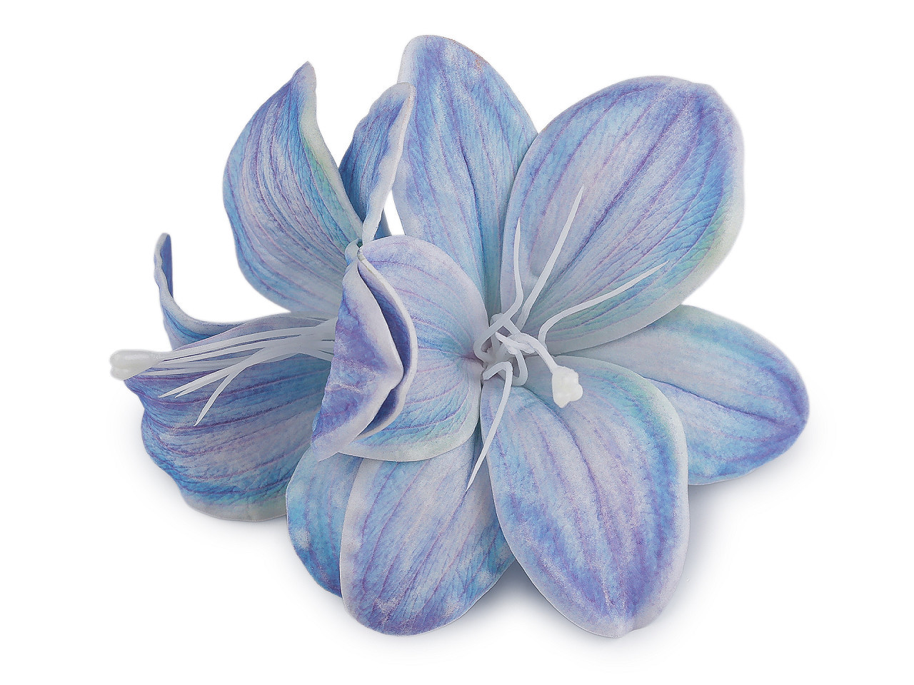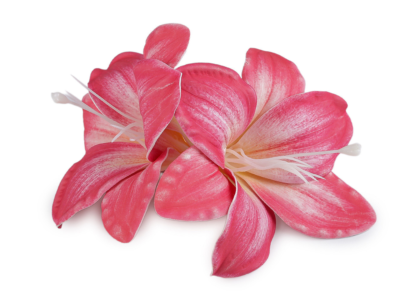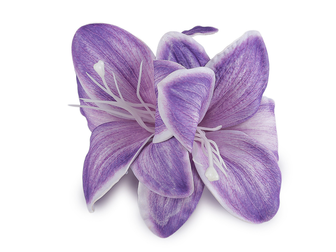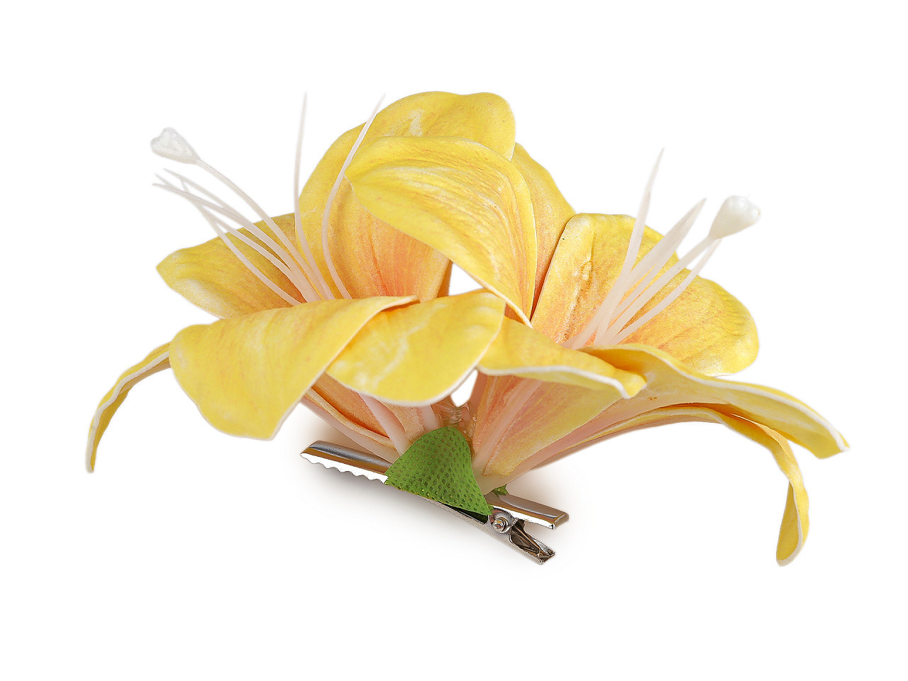 Sponka do vlasů s květy lilie – elegantní doplněk pro každý účes. Dodajte svému účesu nádech elegance a jemné krásy s unikátní sponkou do vlasů zdobenou velkými květy lilie. Precizně zpracované květy z kvalitního foamiranu si zachovávají tvar, mají detailní potisk a působí jako skutečné. Uprostřed jsou ozdobeny pestíky, které dodávají realistický vzhled. Celokovová konstrukce s pevnými zoubky drží vlasy bezpečně na místě.