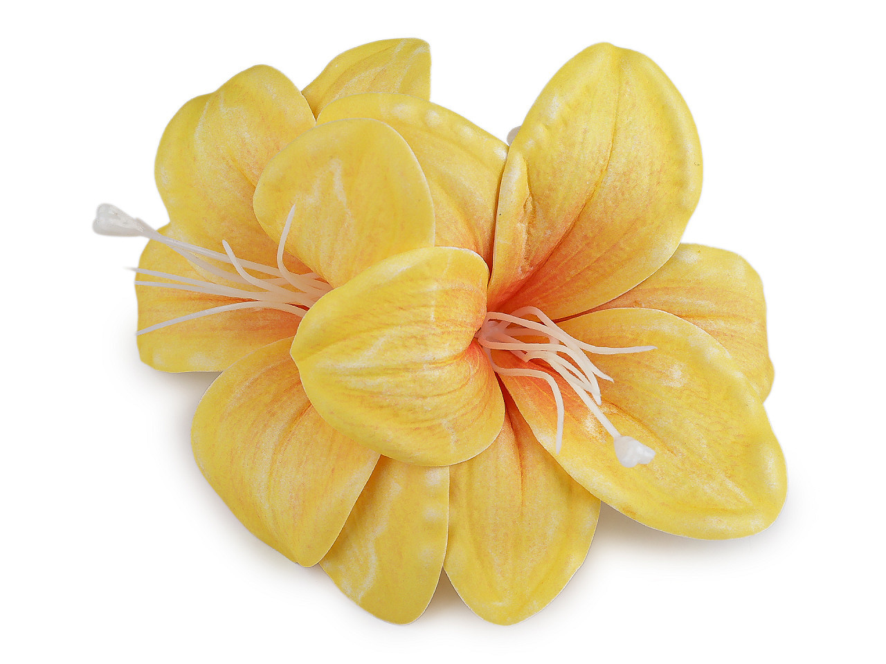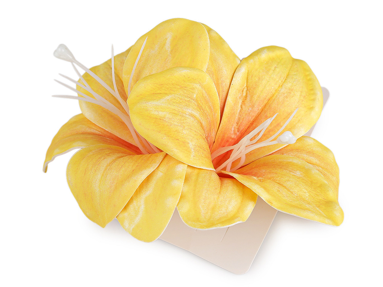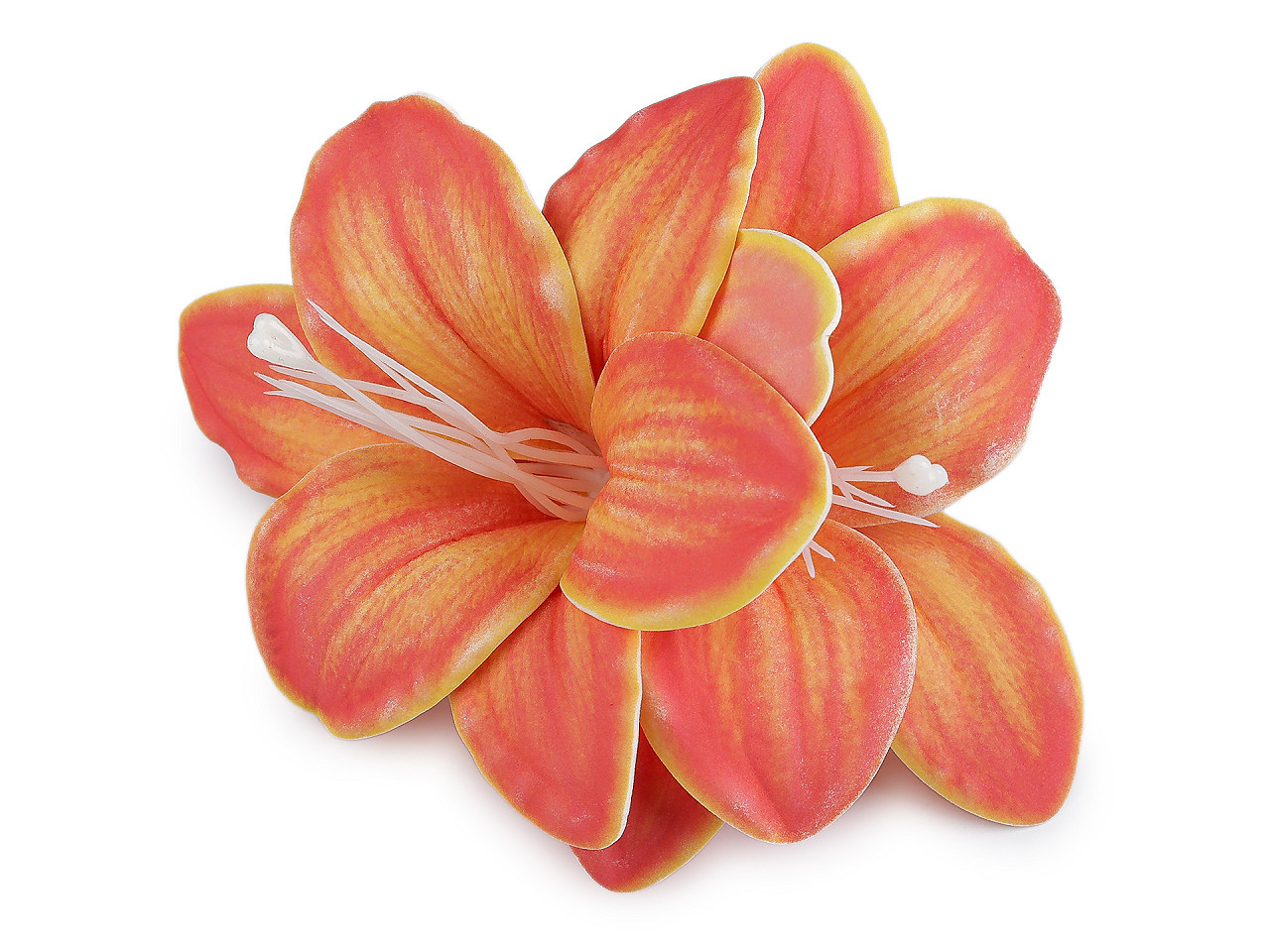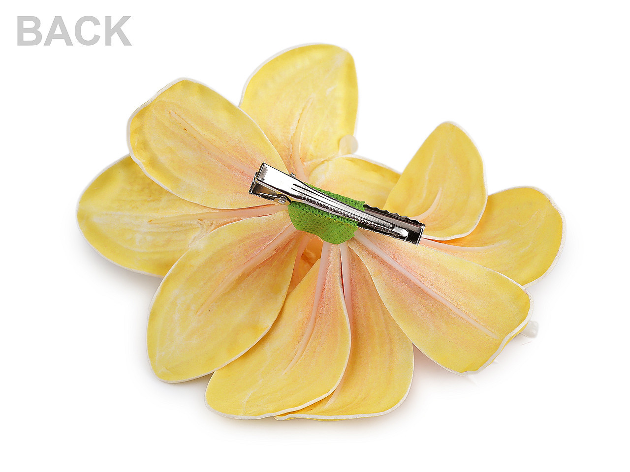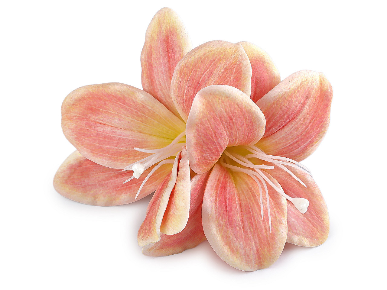 Sponka do vlasů s květy lilie – elegantní doplněk pro každý účes. Dodajte svému účesu nádech elegance a jemné krásy s unikátní sponkou do vlasů zdobenou velkými květy lilie. Precizně zpracované květy z kvalitního foamiranu si zachovávají tvar, mají detailní potisk a působí jako skutečné. Uprostřed jsou ozdobeny pestíky, které dodávají realistický vzhled. Celokovová konstrukce s pevnými zoubky drží vlasy bezpečně na místě.