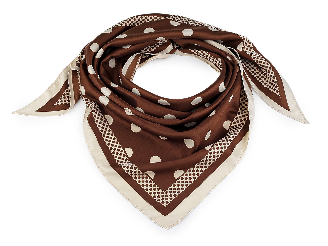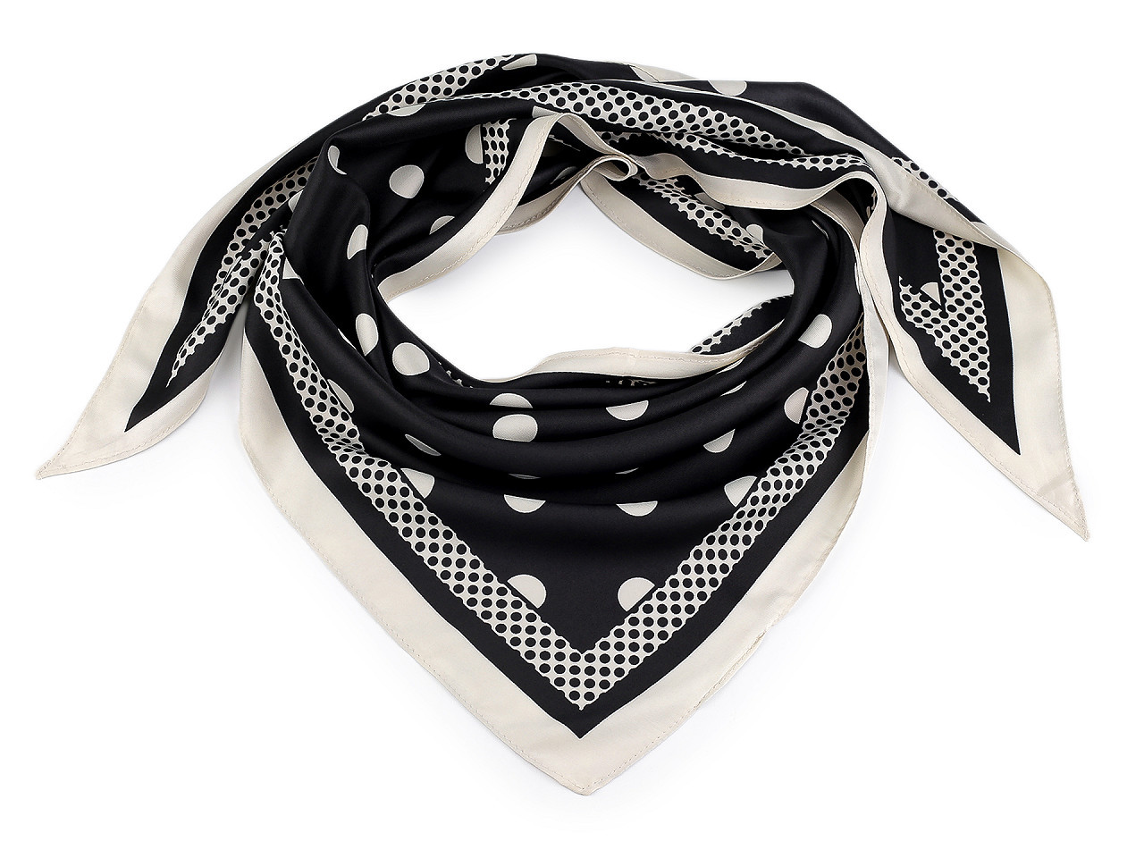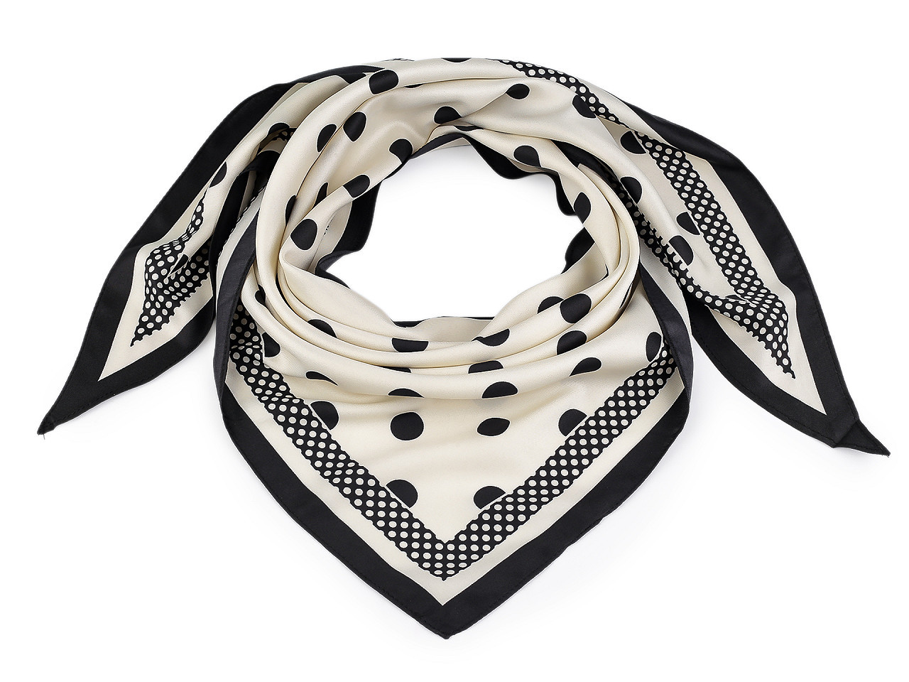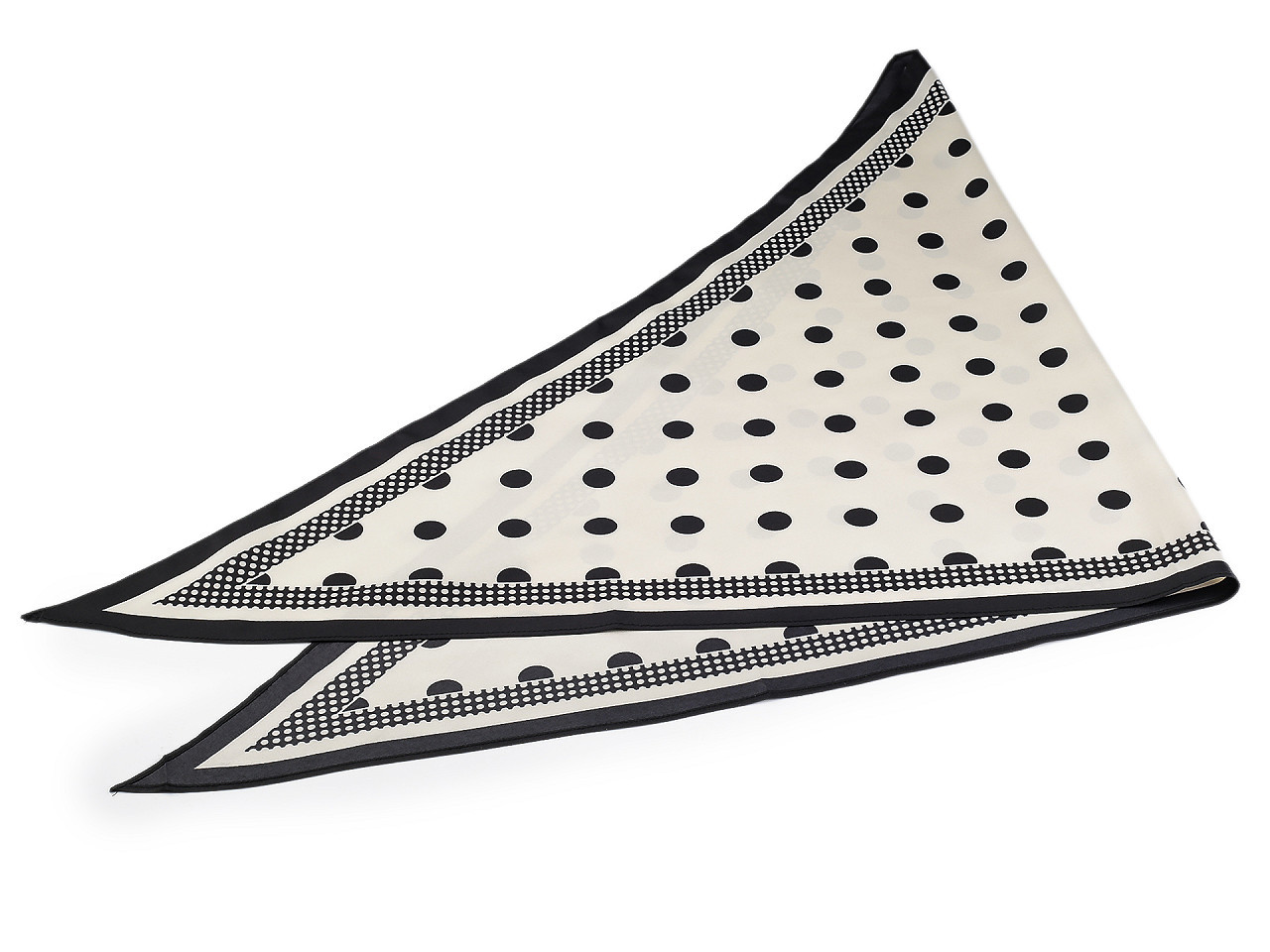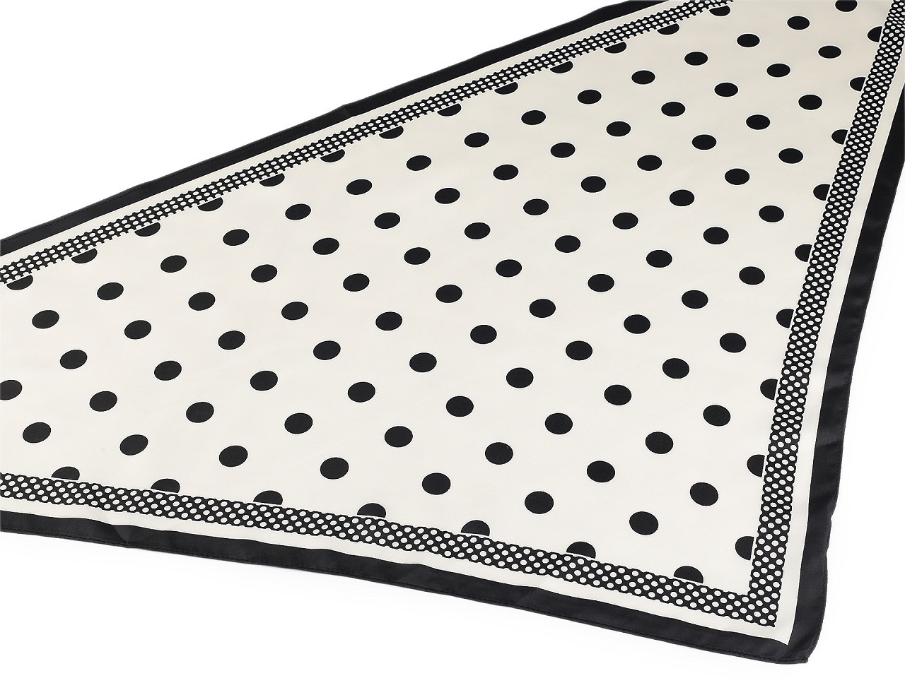 Saténový trojúhelníkový šátek s puntíky – elegantní módní doplněk. Dodejte svému outfitu šmrnc s luxusním saténovým šátkem v moderním trojúhelníkovém tvaru. Velké puntíky působí hravě i stylově, zatímco jemný satén nabízí elegantní lesk a příjemný dotek na pokožce. Tento univerzální doplněk lze nosit mnoha způsoby – kolem krku, jako ozdobu do vlasů nebo na kabelku. Perfektní volba pro pracovní schůzky, večírky i každodenní nošení.