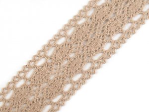Bavlněná paličkovaná krajka se zajímavým vzorem má okraje zakončené očky. Doporučujeme ji žehlit přes tkaninu.