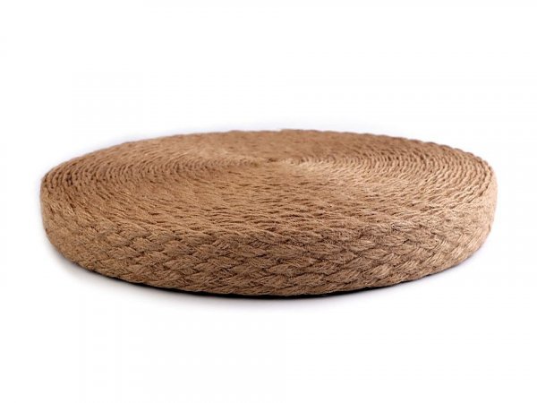 Splétaný popruh je vyrobený z přírodního materiálu. Zaujme vás jeho pevnost a odolnost. Je spletený z jutových provázků.