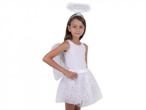 Kostým anděla se skládá z tylové sukýnky a křídel, která jsou vyztužená a nasazují se pomocí gumiček. Rozměry křídel jsou 32 x 43 cm, délka sukně je 32 cm, obvod pasu je 48 - 80 cm.