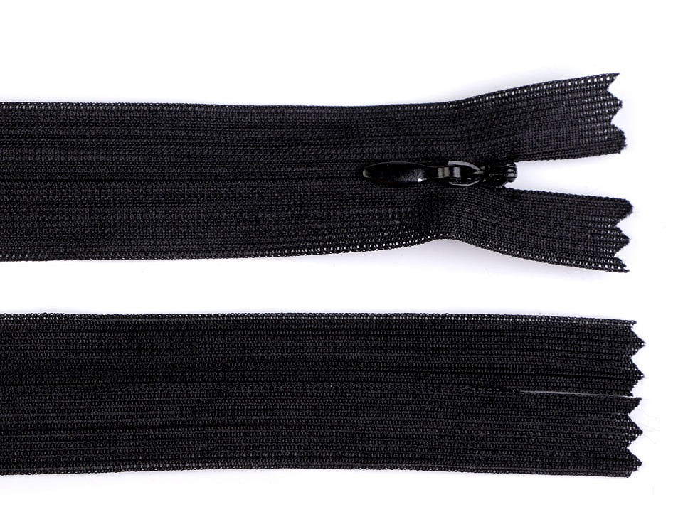 Skrytý spirálový zip je po našití prakticky neviditelný.
