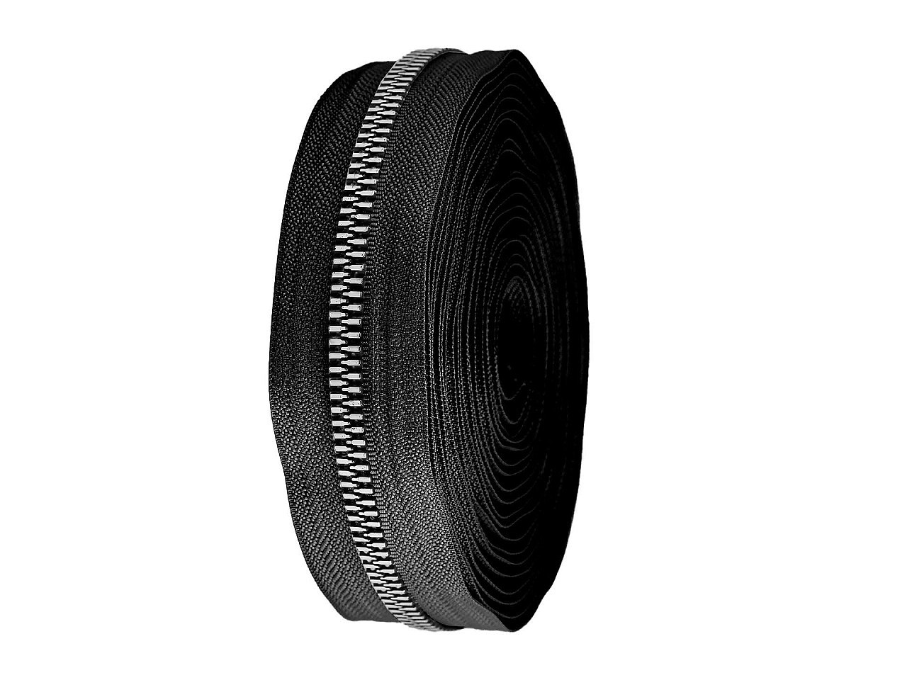 Kostěný zip v metráži má efektní stříbrné zoubky. Využijete ho na oděvy (mikiny, bundy, kabátky) nebo na výrobu zipových tašek.