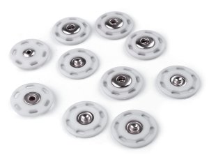 Designové plastové patentky využijete jako zapínání na tašky, kabáty, bundy nebo mikiny. Okraje mají lemované dírkami, kterými je pohodlně našijete na látku.