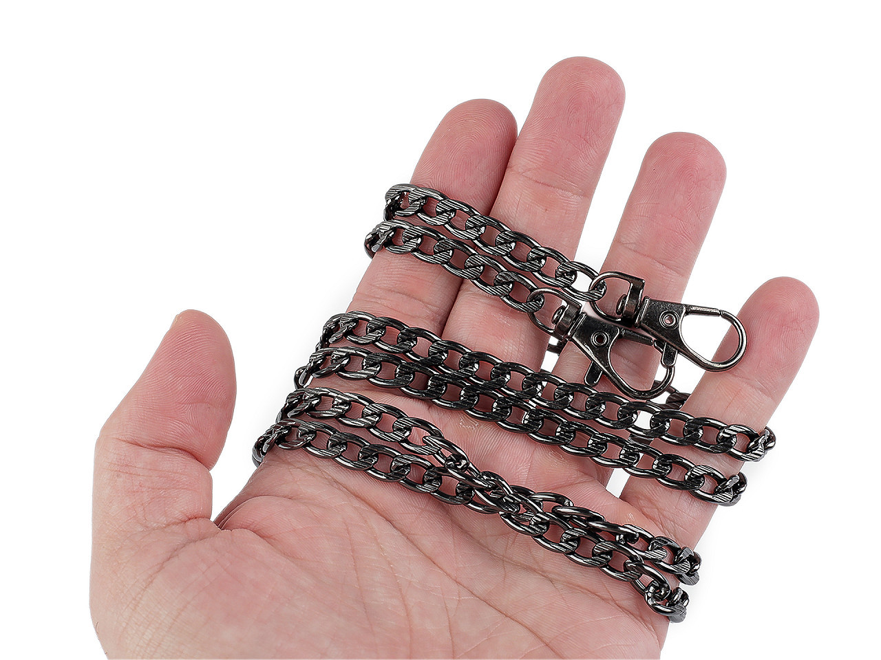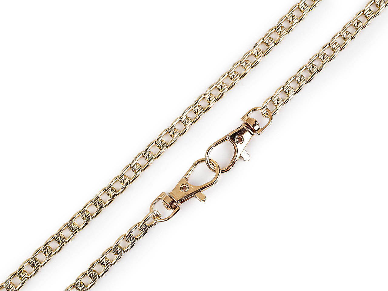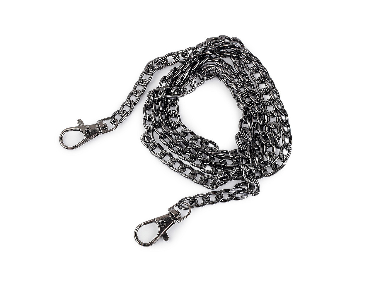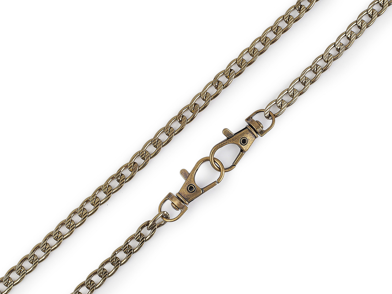 Řetízek je zajímavým svým povrchem, který zdobí reliéf. Očka jsou oválná. Řetěz nemá žádné zakončovací karabinky. Využijete ho hlavně na ucha kabelek nebo na ozdobení bot, klobouků apod.