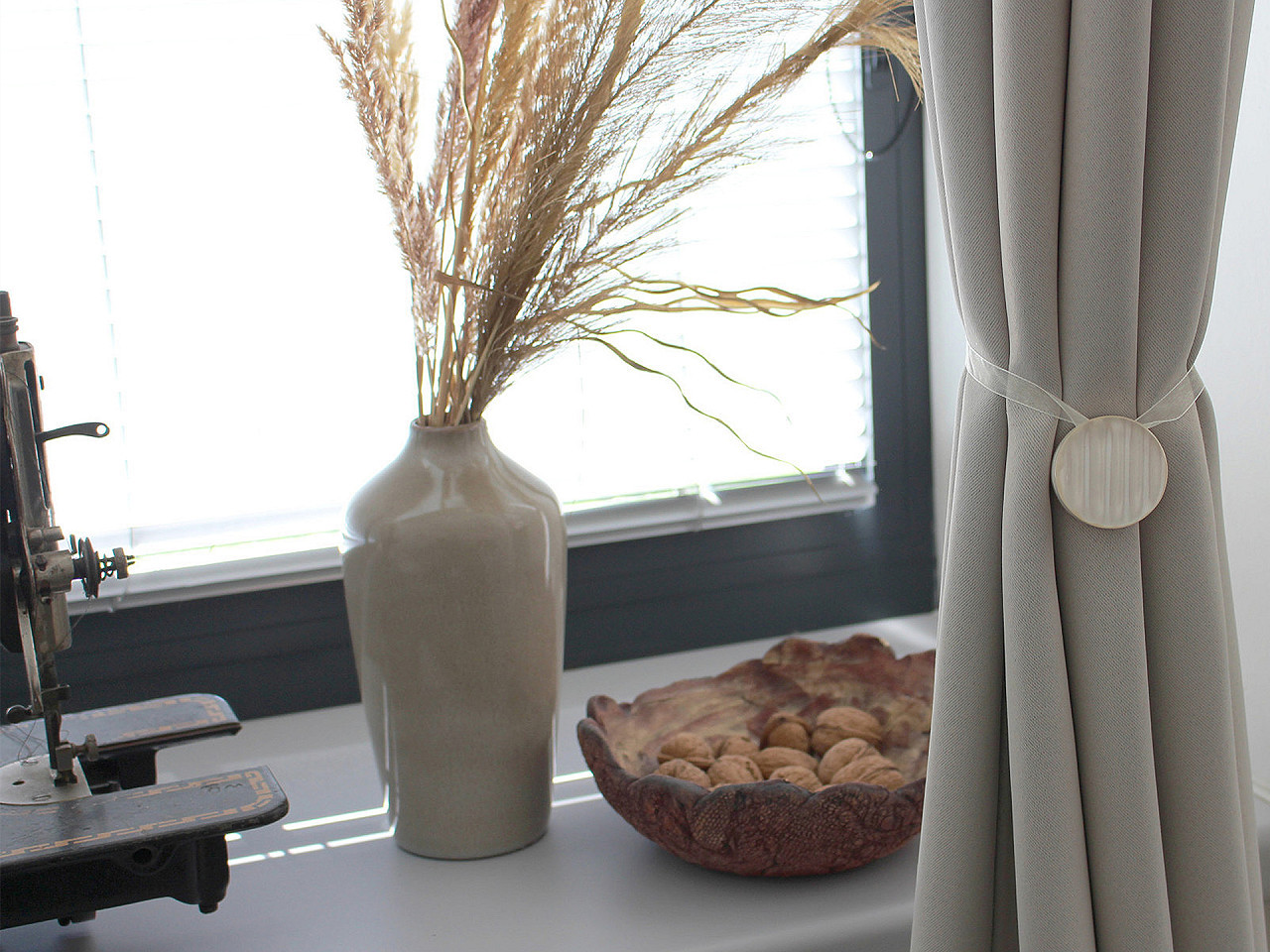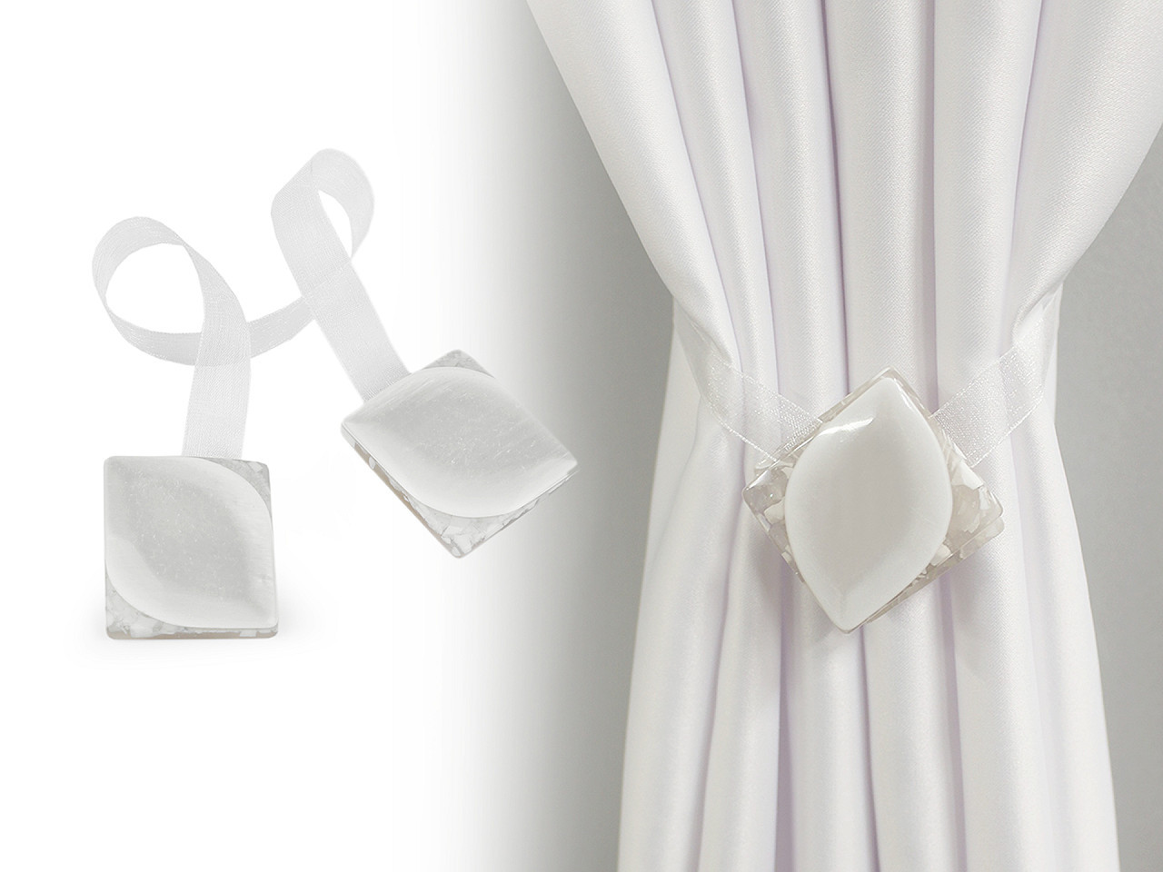 Magnetická spona na závěsy je praktický doplněk do každé domácnosti, který vám umožní snadno a rychle sepnout závěsy nebo záclony. Díky silným magnetům na spodní straně drží spona pevně a spolehlivě, takže vaše závěsy zůstanou upravené po celý den. Elegantní provedení s lesklou šifónovou stuhou dodá vašemu interiéru stylový vzhled. Magnetická spona je ideální volbou pro rychlé a jednoduché uchycení bez nutnosti vrtání nebo instalace háčků.