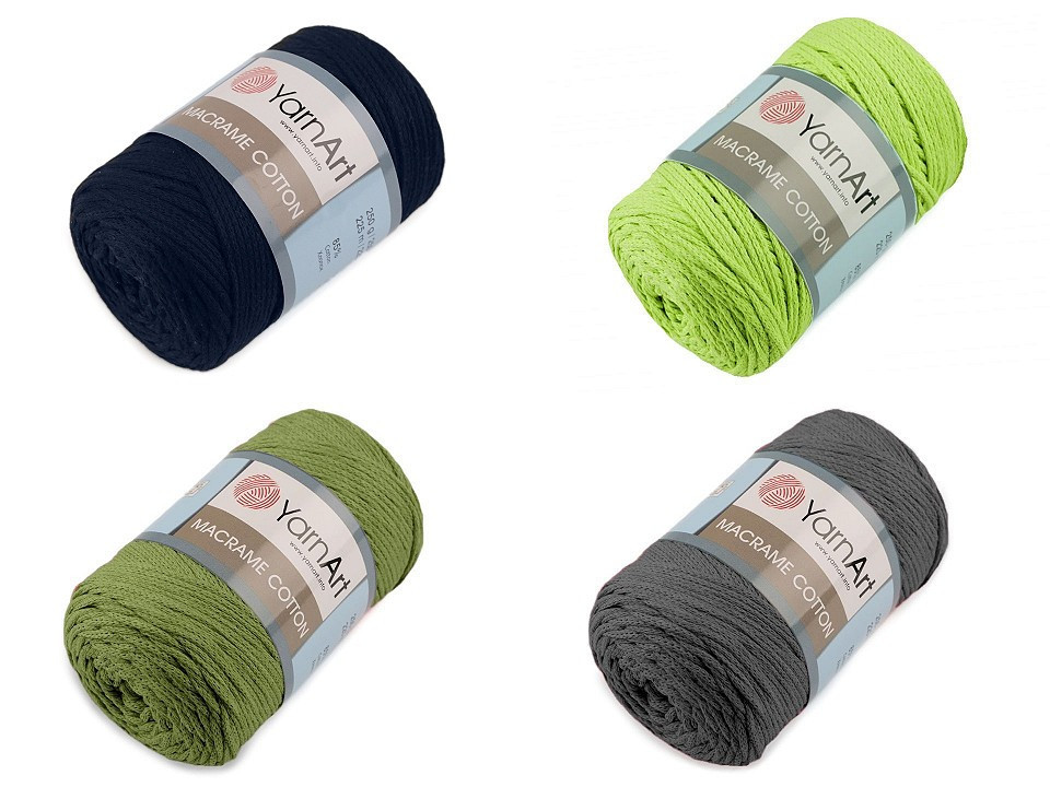 Příze Macrame Cotton připomíná provázek. Využijete ji na pletení nebo háčkování pufů, košíků, koberečků i tašek.