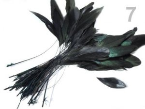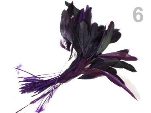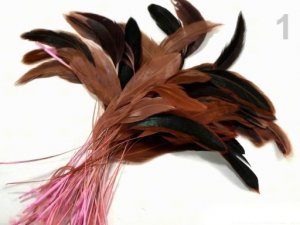 Kohoutí peří je uměle barvené (určeno pouze k dekoračním účelům, nebezpečí zabarvení). Peří celé měří cca 13 -18 cm, brčko Ø1 mm přechází do 0,1 mm, pírka na konci měří délka 4 - 6 cm, šíře cca 1 cm.