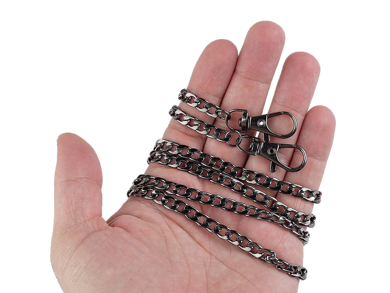 Plochý řetízek využijete na tašky a kabelky. Na obou jeho koncích najdete připevněné karabinky.