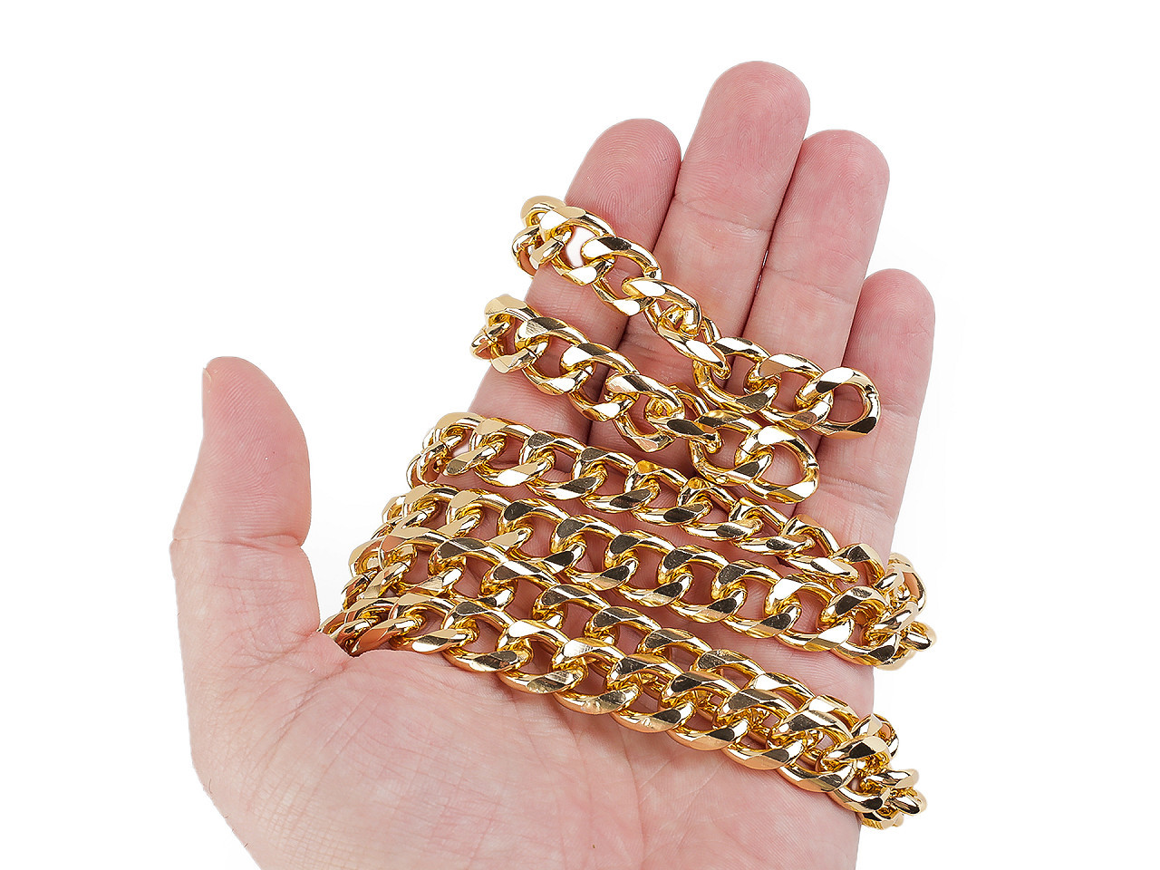 Řetěz je kvalitní a vyrobený z pevného materiálu. Očka nejsou v místě spoje svařená. Řetěz nemá žádné zakončovací karabinky.