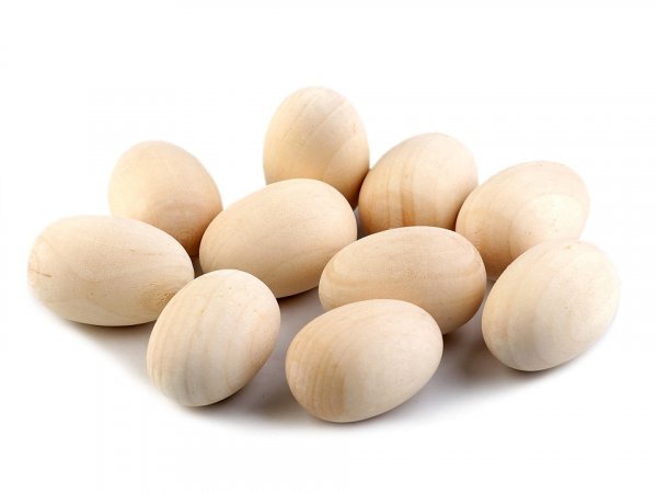 Dřevěné vejce se uplatní na spoustu kreativních technik. Jeho povrch není lakovaný, můžete na něj kreslit, malovat, obháčkovat ho, obšít korálky, je vhodné k drátování. Můžete ho využít jako hlavičku při výrobě panenek.