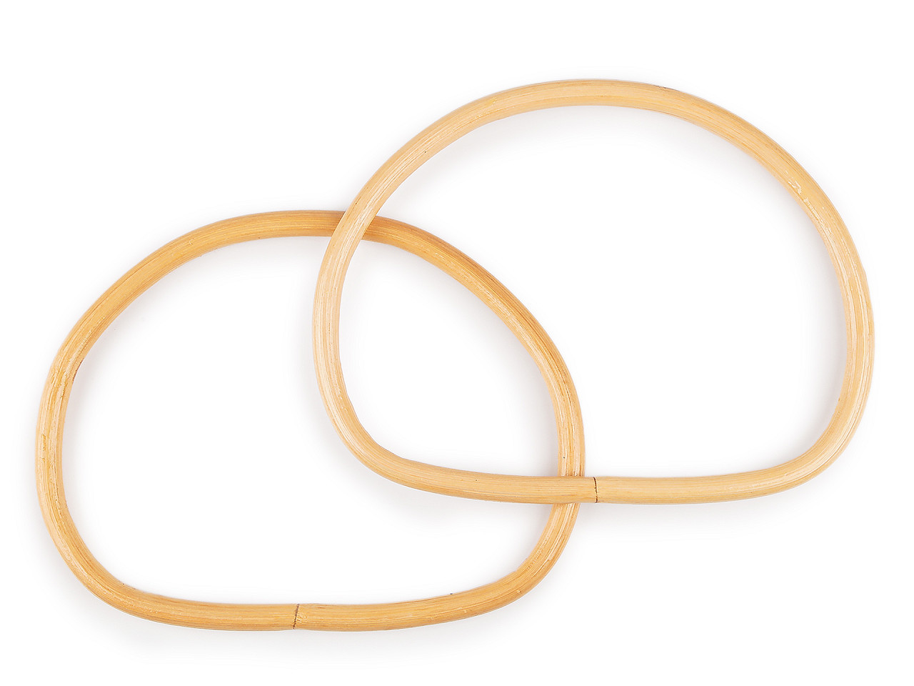 Pevná ucha vyrobená z bambusu jsou vhodná k jakékoliv textilní tašce. Vnitřní rozměr cca 8,5 x 12 cm. Vnější rozměry 10 x 13 cm, obvod 38 cm.