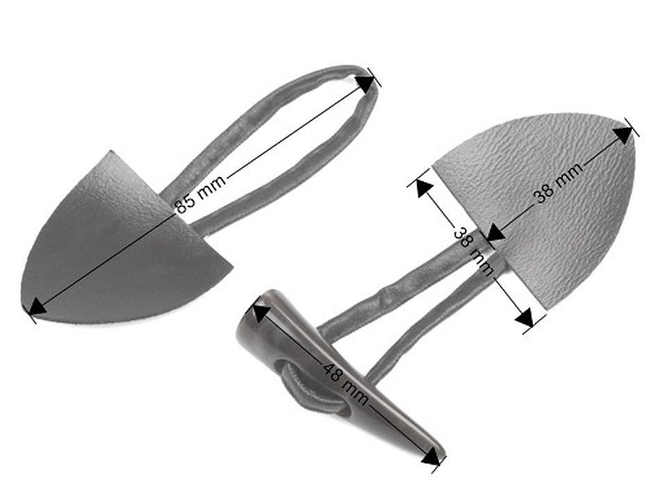 Velikost knoflíku: 4,8 cm délka roztaženého poutka: 13 cm. U tohoto typu zapínání se jedná o polotovar. Před aplikaci na oděv je nutno poutko přišít. Výhodou je že si na poutku můžete nastavit velikost, kterou potřebujete.